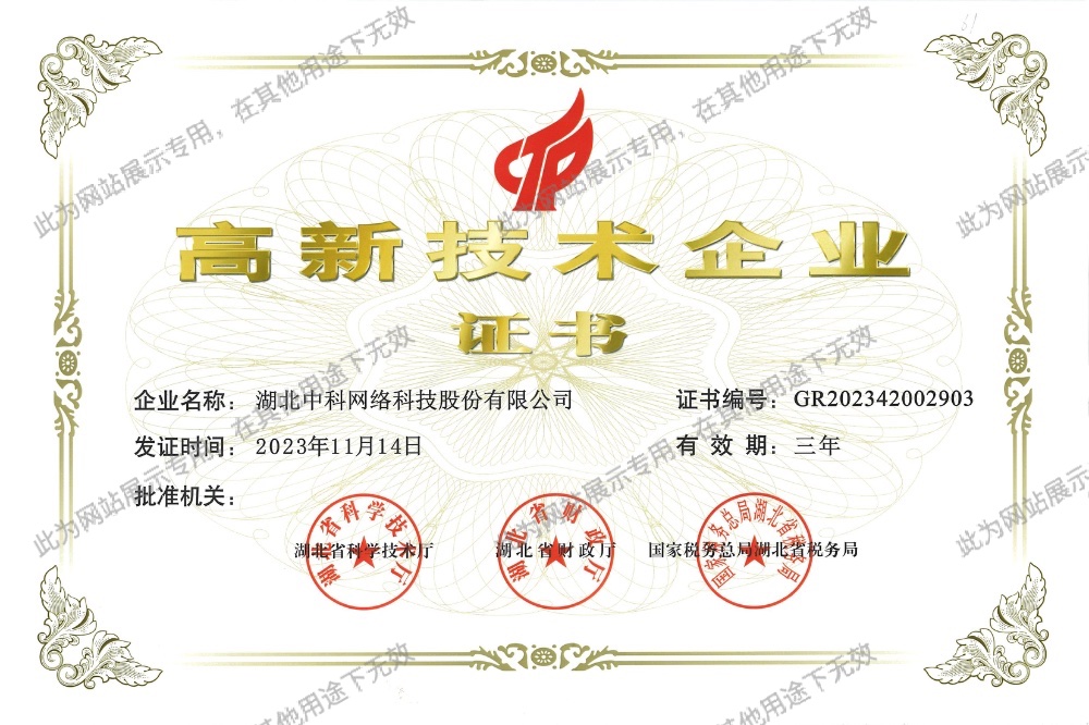 湖北中科網絡科技股份有限公司成立于1998年5月,注冊地為武漢市武昌區,總部位于中國光谷。是智能化、信息化行業(yè)的領軍企業(yè),國家認定的高新技術企業(yè)、湖北省專精特新企業(yè)。